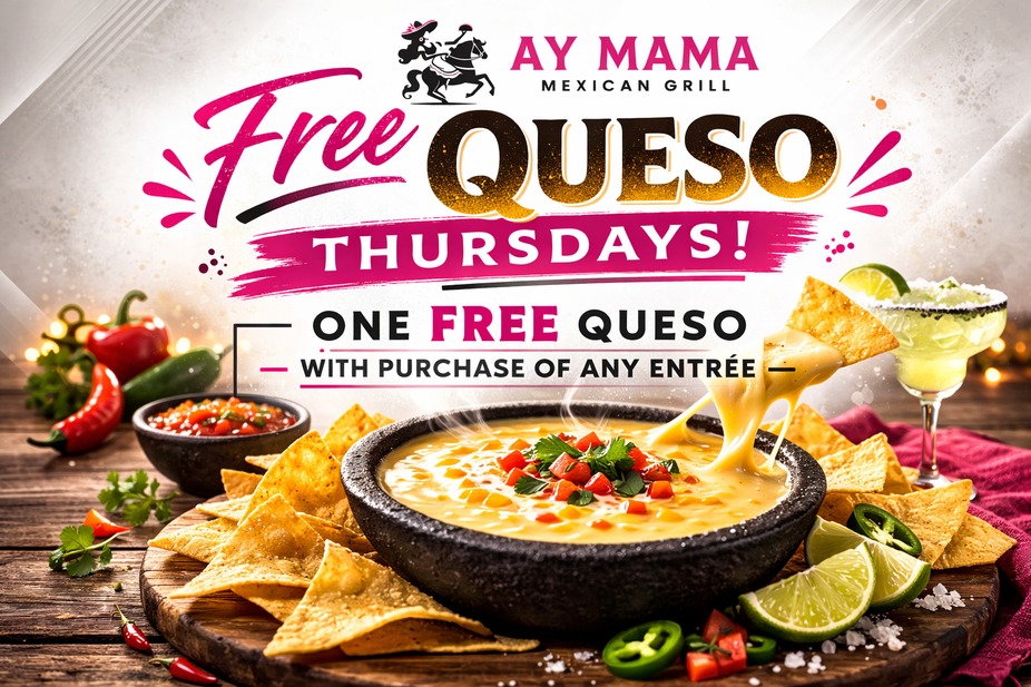 One FREE! Queso with a purchase of any Entree!
